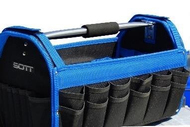 With a slightly bigger footprint of 52cm x 30cm the SOTT toolbox has a capacity of 30 liters. So you will have everything you need right by your side. The SOTT toolbox comes with two additional bottle holders that can be attached to the toolbox with Velcro. Now you can take up to 4 (Spray-)Bottles along without them toppling over.