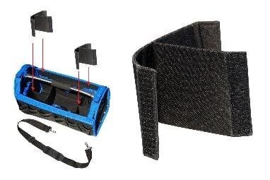 As many as 4 sturdy straps with Velcro hold your longer tools, such as cutting rulers.