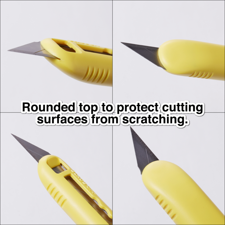 Rounded plastic front to enable you to push the knife against the body of the vehicle without risk of scratching paintwork and to keep a steady hand when trimming between panels.