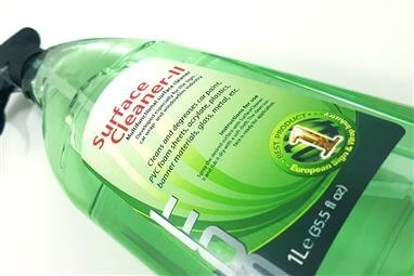 SOTT Surface Cleaner-II is the number one cleaner in the advertising industry. It meets all of the demands of the fitter; just spray Surface Cleaner-II on any surface. It loosens the dirt and you just remove it with a dry cloth. Surface Cleaner works fast and dries during polishing. No stripes, lines or dirt getting spread around.