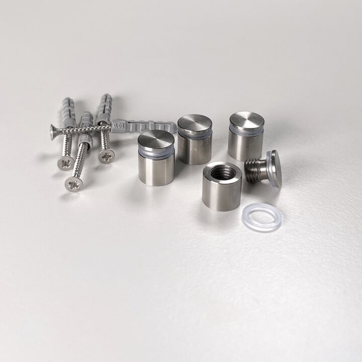 Suitable for pre-drilled signs, bolt (cap) with left-hand thread. Stainless steel.
