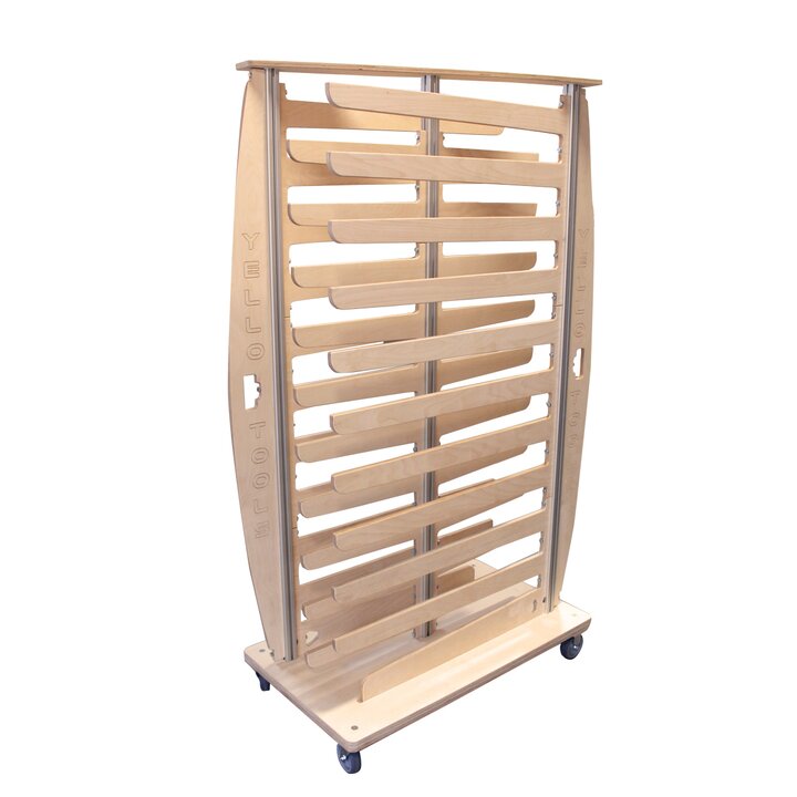 The mobile film roll holder Speed TimberRack, made of high-quality wood, offers space for a total of 42 rolls.