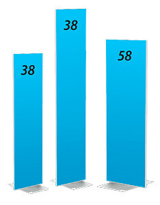 Assembly takes place in a minute and completely without tools. It has a swivel foot to increase stability when needed. Width: 38 & 58cm, Height: 140, 160 alt. 180 cm, Weight 3.5 and 4.0 kg respectively