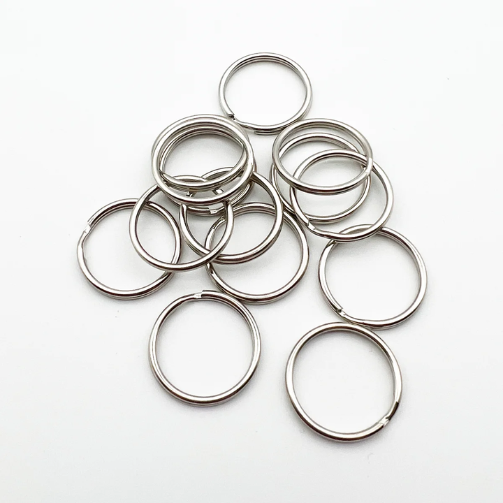 Standard 2-turn keyring in shiny silver, Size 20 mm. 100 pcs / batch.