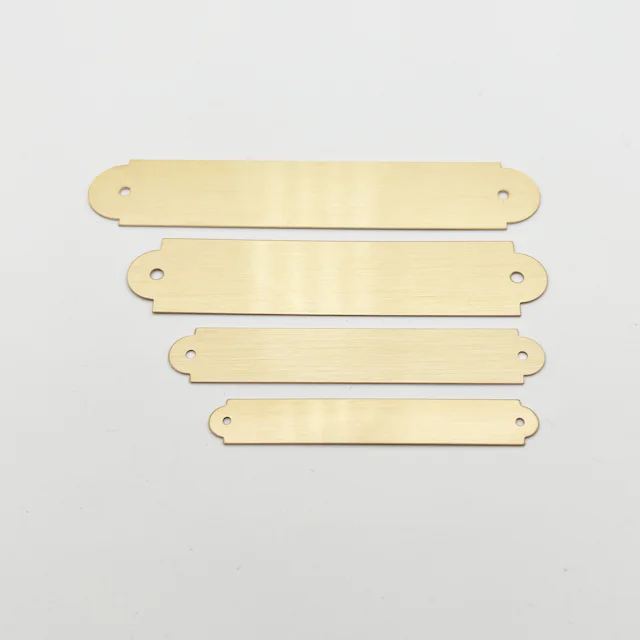Placard signs made of lacquered 0.51 mm brass. Specially adapted for rotary diamond engraving. Available in several different sizes.