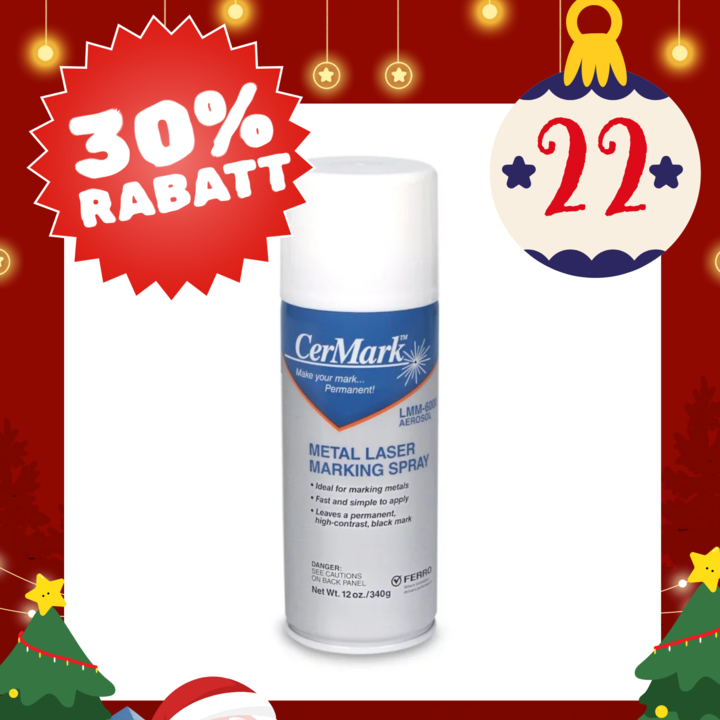 Laser marking agent for marking on metal, e.g. stainless, titanium and steel. Intended for CO2 laser engraving. Gives black text/image after laser engraving.