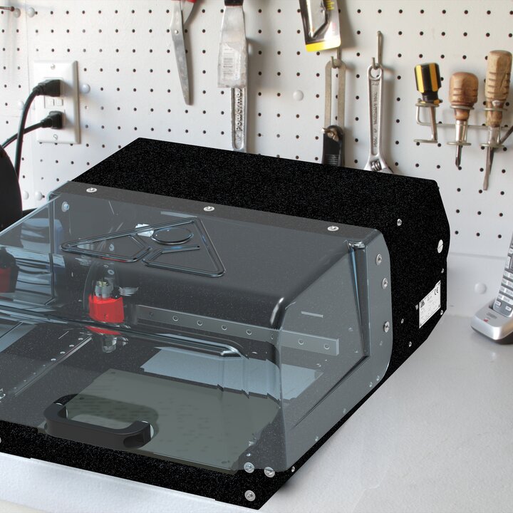 - Flexible workspace – Open design allows you to engrave long sheets without limitation in the X or Y direction.