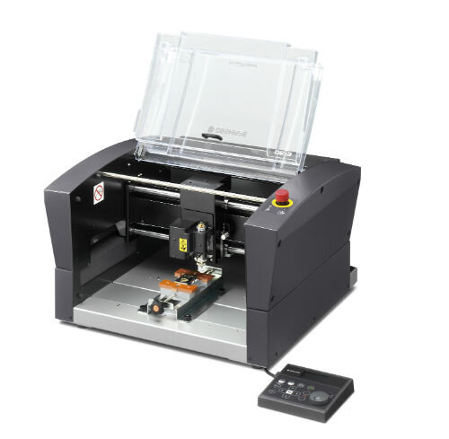 Now with control of external equipment, e.g. chip extractor! This versatile tabletop engraving machine handles everything from signs and trophies to high-end gift items, tools and industrial components – with impressive precision and reliability. With an integrated safety guard and user-friendly design, the DE-3 is also ideal for use in retail environments, where both safety and ease of use are essential. Create professional results – simply, quickly and safely.