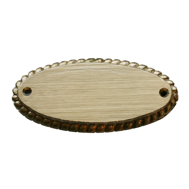 Oval door sign in brass, Has a decorative edge. Available in several different colours. Size 100x46 mm.