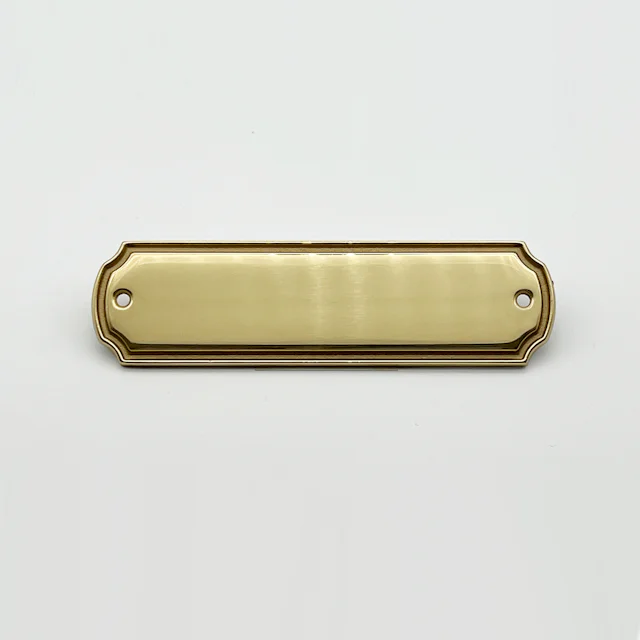 Rectangular brass door sign. With a decorative grooved edge. Available with several different designs. Size 155x45 mm.