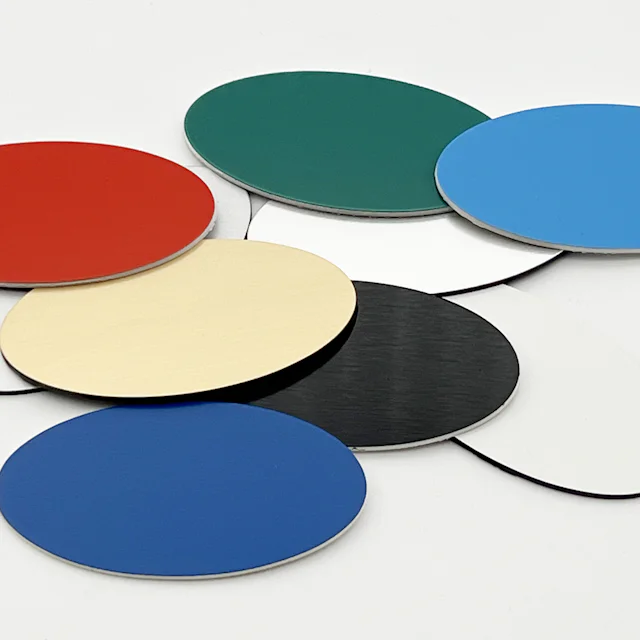 Nameplates made of 1.6 mm (2-layer) plastic laminate. For marking with rotary engraving, UV printing and CO2 laser engraving. Available in several different color combinations.
