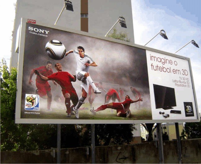 A PVC-free banner based on a polyester fabric. A black barrier layer provides a high opacity and prevents disturbing translucency even in bright light. Suitable for indoor and outdoor banners.