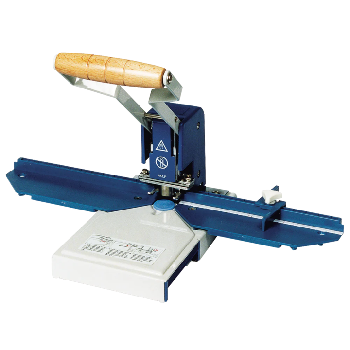Sturdy manual thumb cut punch for diary production. Thumb grip and round hole punch are included as standard. Can be supplemented with other Warrior dies.