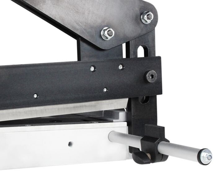 This powerful and compact bench shear is both durable and designed for easy use. With an adjustable stopper and blade stabilizer, you’ll always get precise cuts. Thanks to the indirect levers, the effort is reduced, making the work easier and more efficient. With an impressive cutting length of up to 305 mm, you can easily cut aluminum up to 1 mm and brass up to 0.6 mm. Perfect for precision work on these materials. Safety is a priority with a built-in finger guard, making the shear both reliable and safe to use.